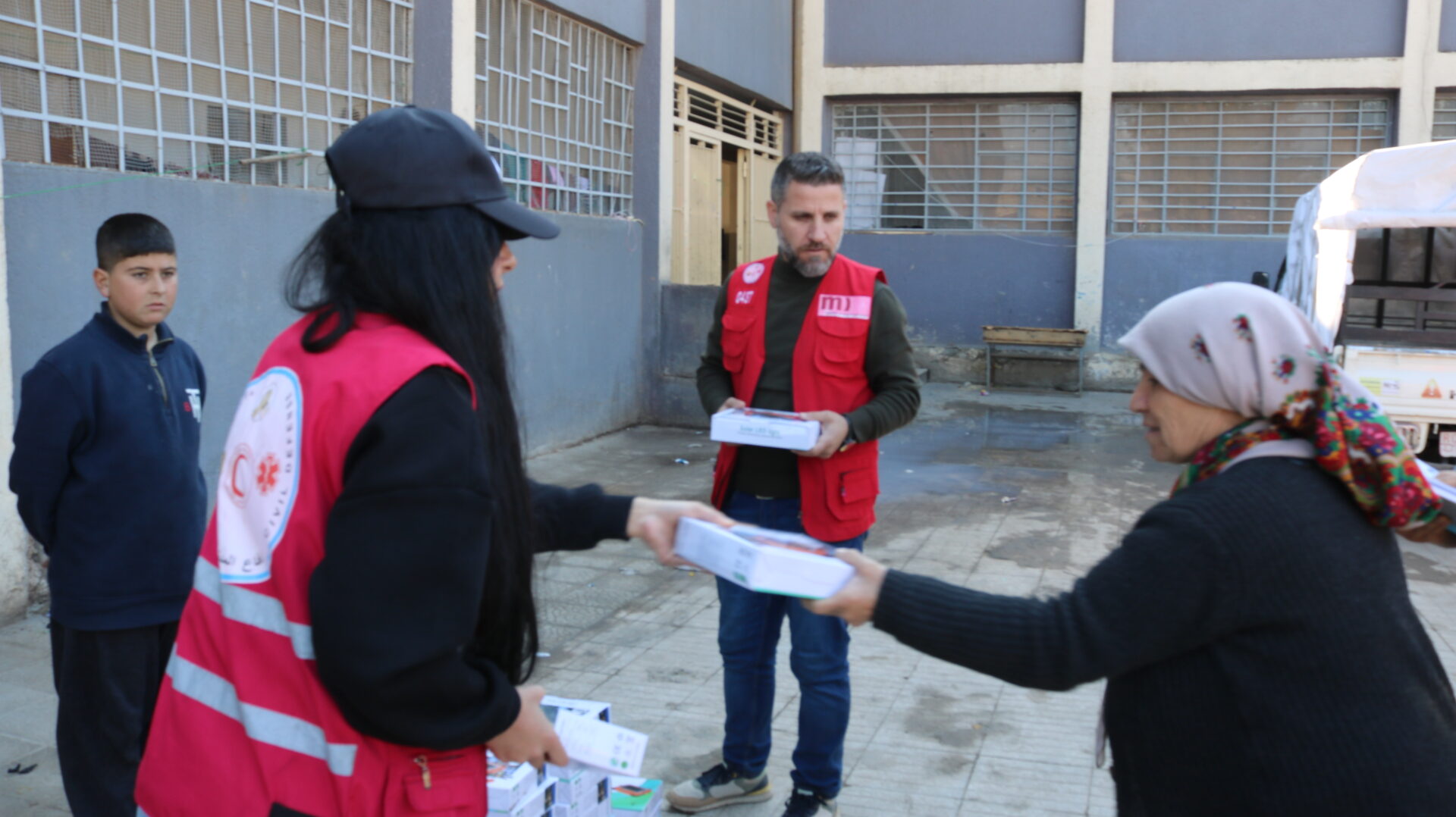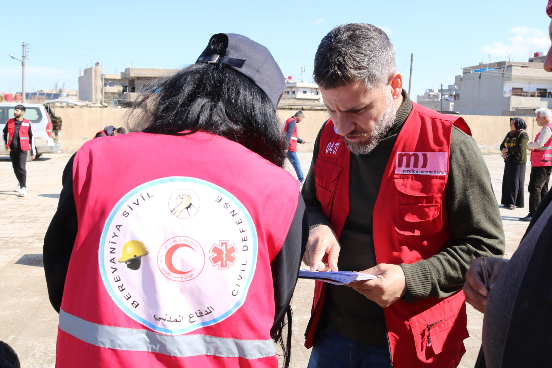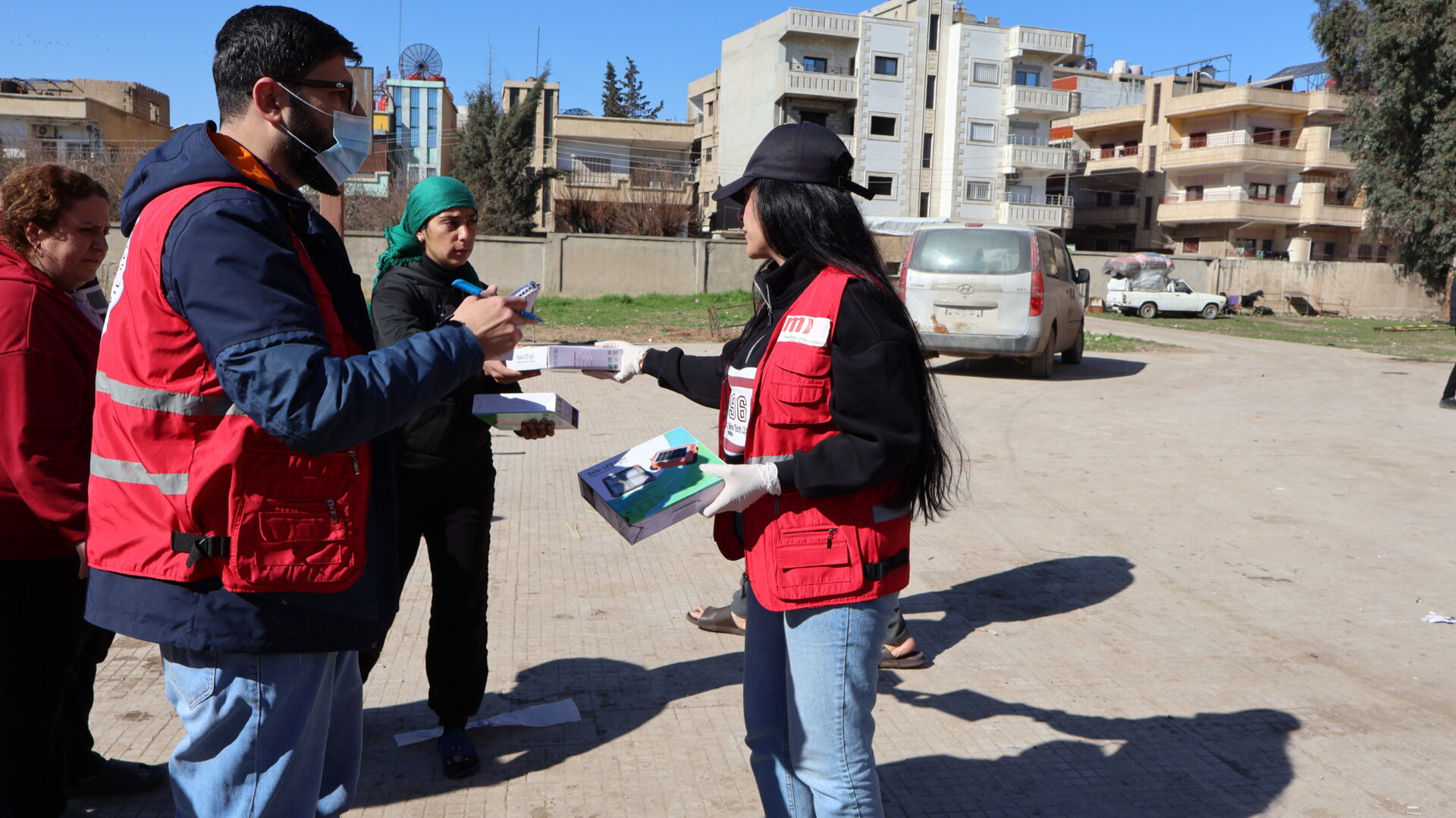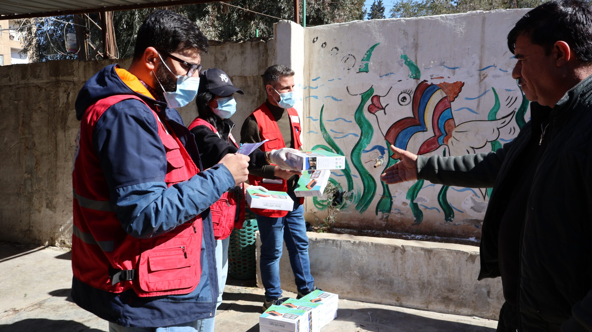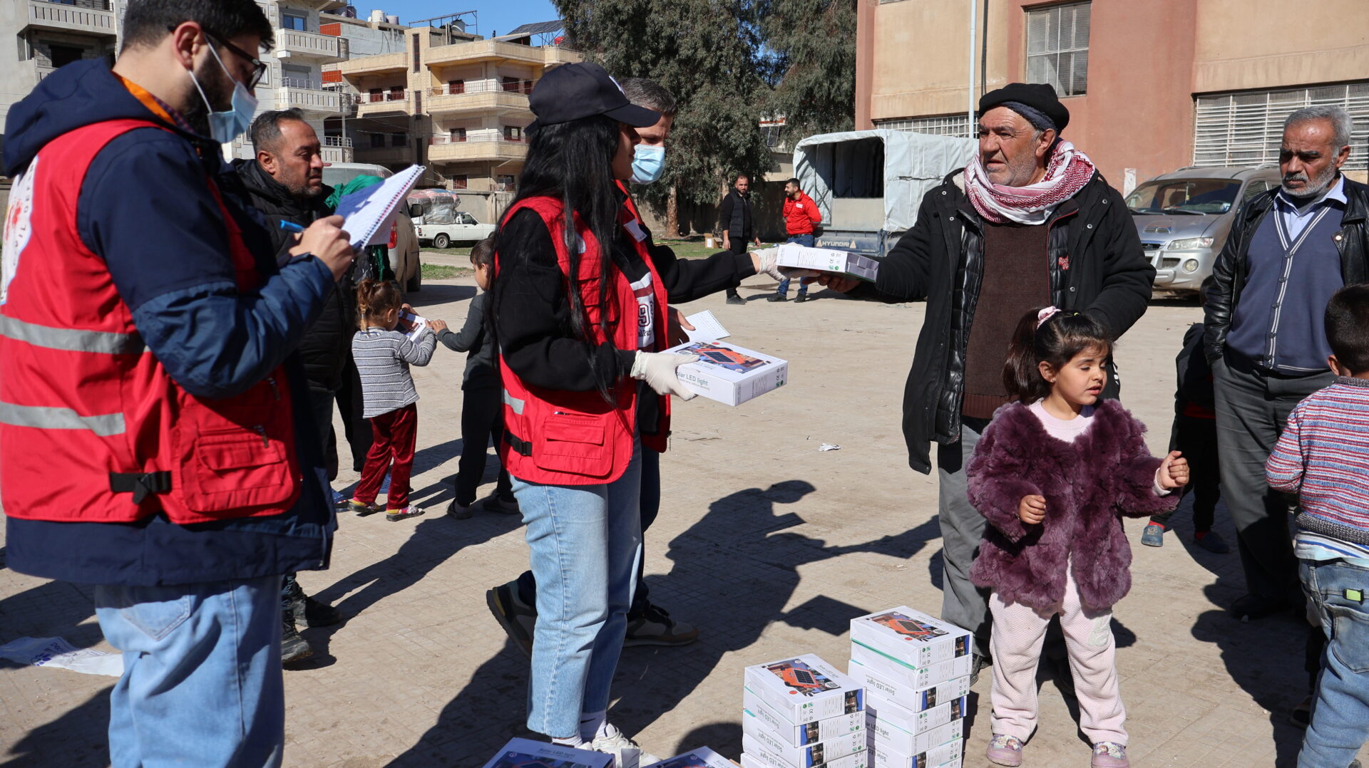 Mit Unterstützung von Medico International verteilten die Teams des Kurdischen Roten Halbmonds in Qamischli 2.100 solarbetriebene Leuchten mit einer Leistung von jeweils 100 Watt und einem wiederaufladbaren Lithium-Akku an Vertriebene, die in Notunterkünften leben. Diese Initiative zielt darauf ab, unter den derzeitigen Umständen eine sichere und nachhaltige Lichtquelle bereitzustellen.